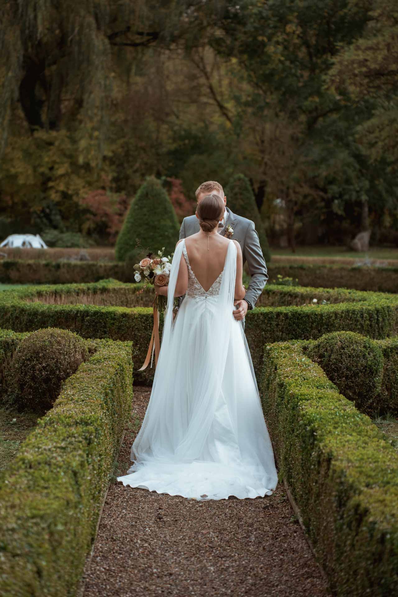 Das hängt natürlich davon ab, wieviel Zeit wir haben. Alles von zehn Minuten bis zu zwei Stunden ist machbar. Am Hochzeitstag empfehle ich aber, das Shooting kurz zu halten und die gewonnene Zeit mit Familie und Freunden zu verbringen. Mit dem richtigen Fotografen kann man sehr schnell tolle Paarbilder machen. Meist empfehle ich, das Paarshooting am Hochzeitstag in zwei Teile aufzuteilen, einmal vor der Trauung als First-Look-Shooting bzw. kurz nach der Trauung und dann noch einmal abends bei Sonnenuntergang. Natürlich orientieren wir uns dabei individuell an eurer Planung.